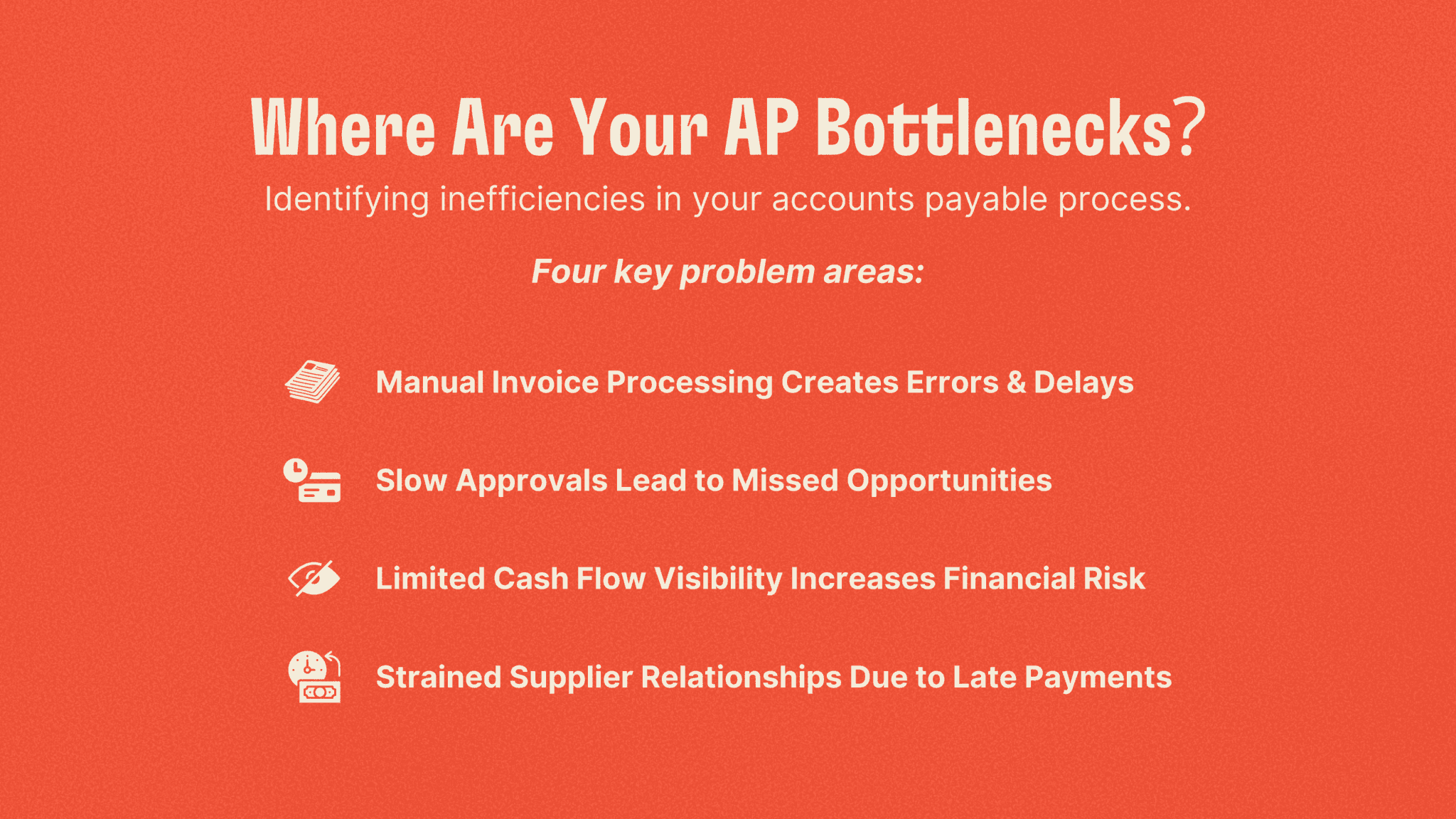 Poor financial decision-making – A lack of real-time AP data makes it difficult to accurately forecast cash flow and plan for expenses.