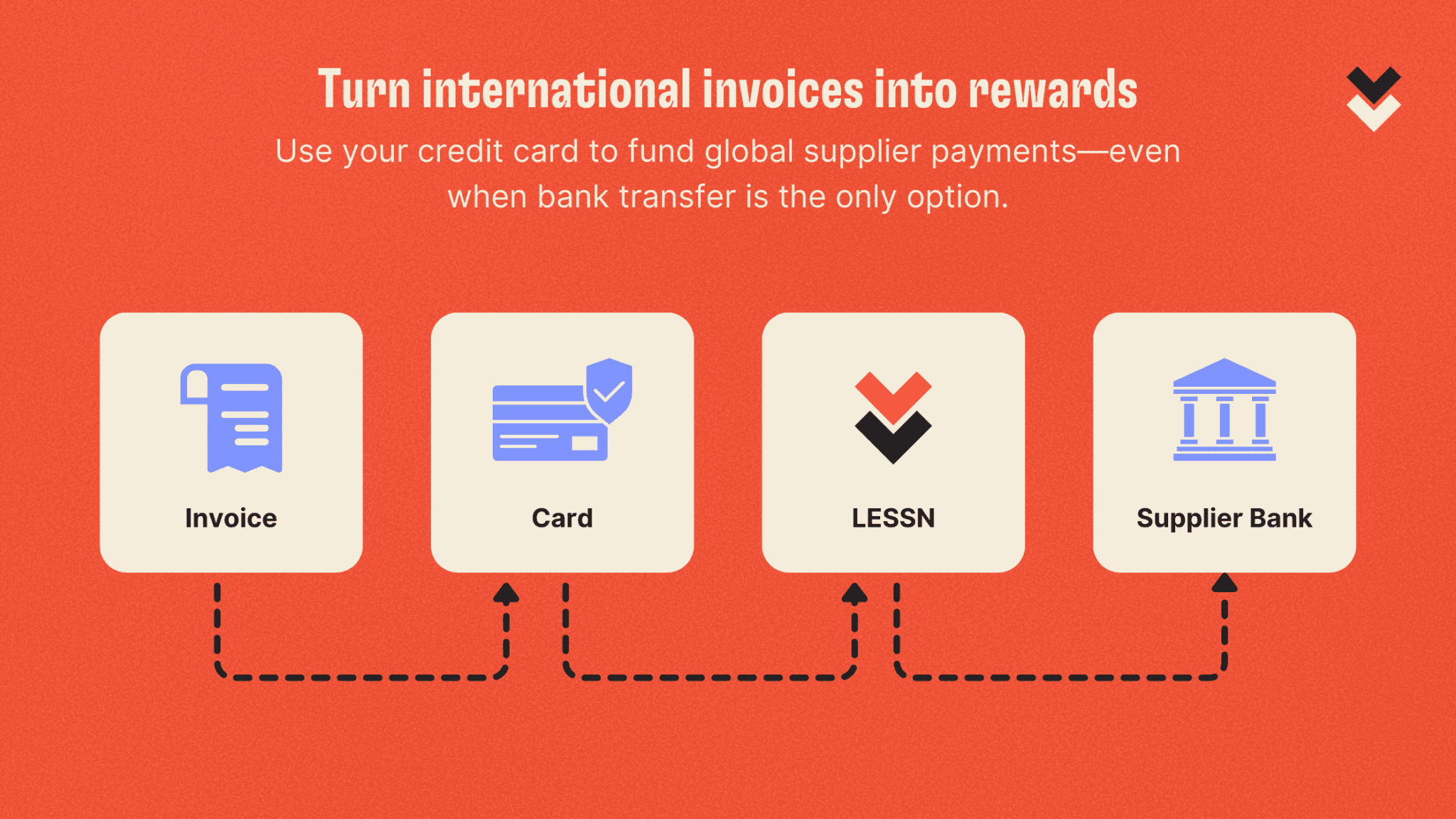 Managing international payments for business shouldn’t mean sacrificing flexibility or efficiency. Lessn empowers you to fund overseas supplier invoices using your credit card, whether it’s AMEX, Visa or Mastercard, unlocking rewards, extending cash flow, and simplifying accounting.