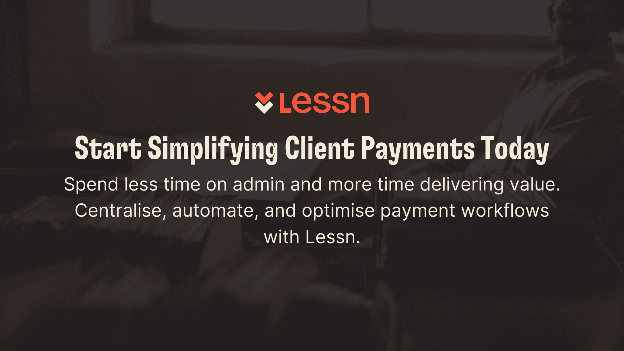 Ready to modernise your practice and spend less time on payment admin? Lessn is the smarter way to simplify client payments while making your service more valuable than ever.