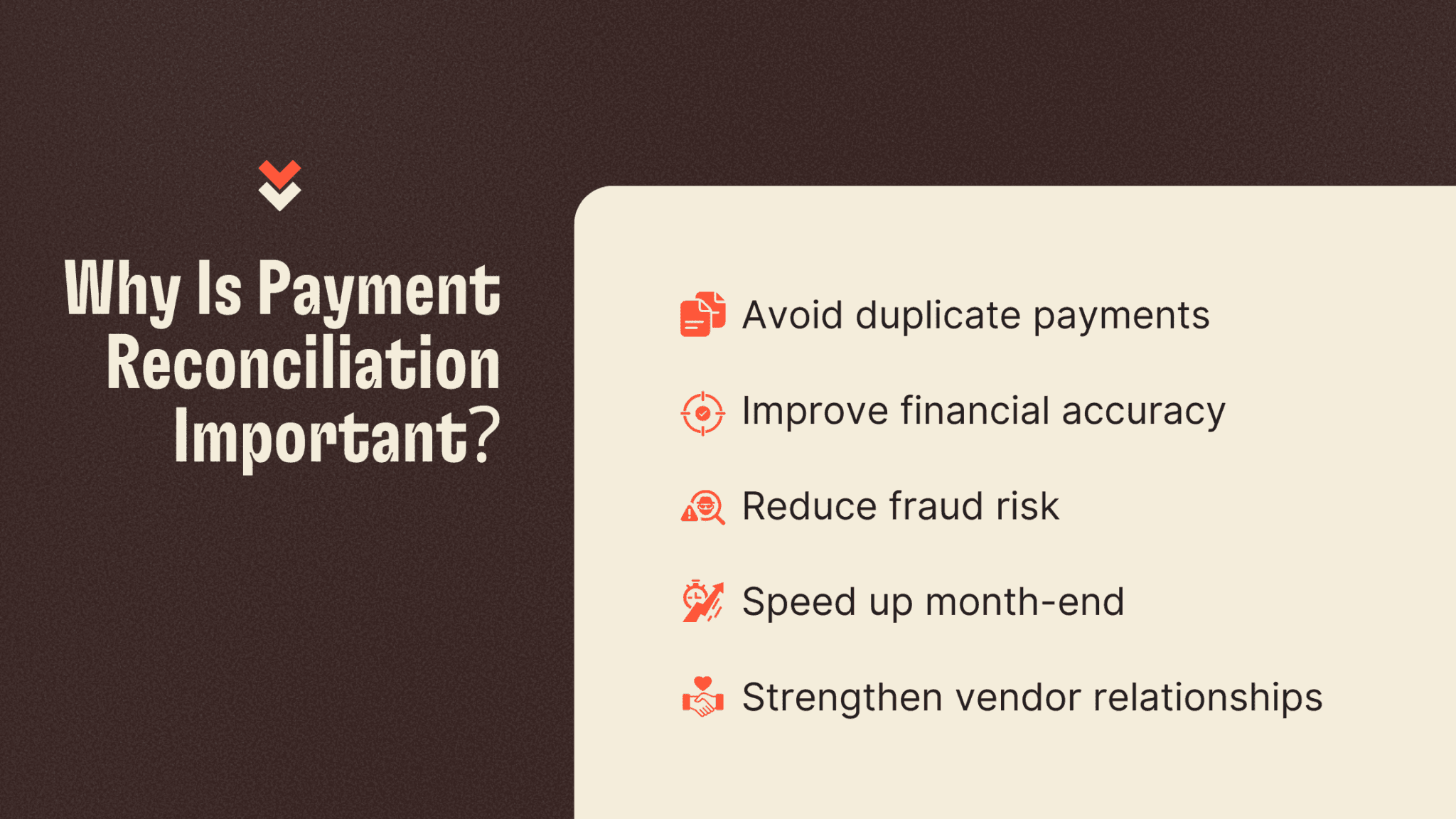 Payment reconciliation plays a critical role in maintaining the financial health and operational efficiency of your business. When done consistently and correctly, it acts as a protective layer that prevents errors, improves reporting, and strengthens relationships with your suppliers. Here’s how: